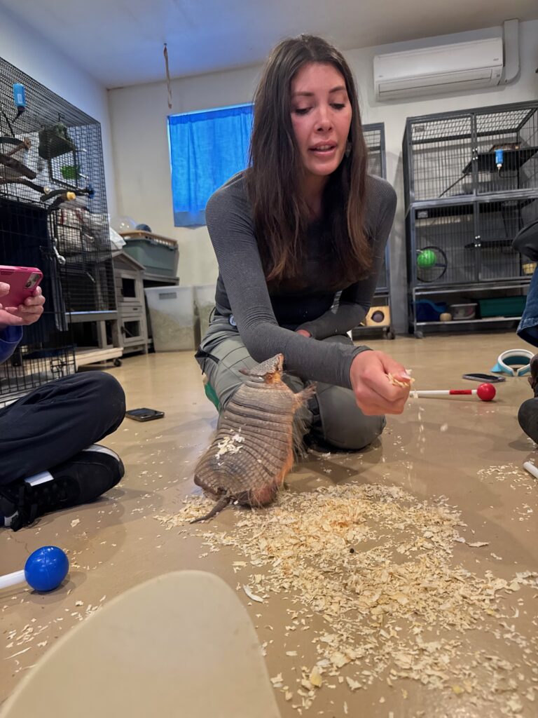 One of the most memorable sessions occurred while working with an 18-year-old screaming hairy armadillo named Holly Jolly.